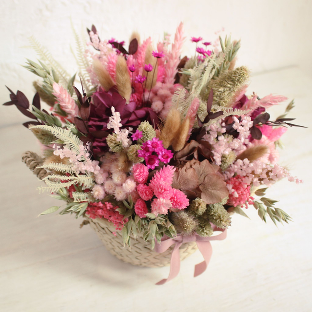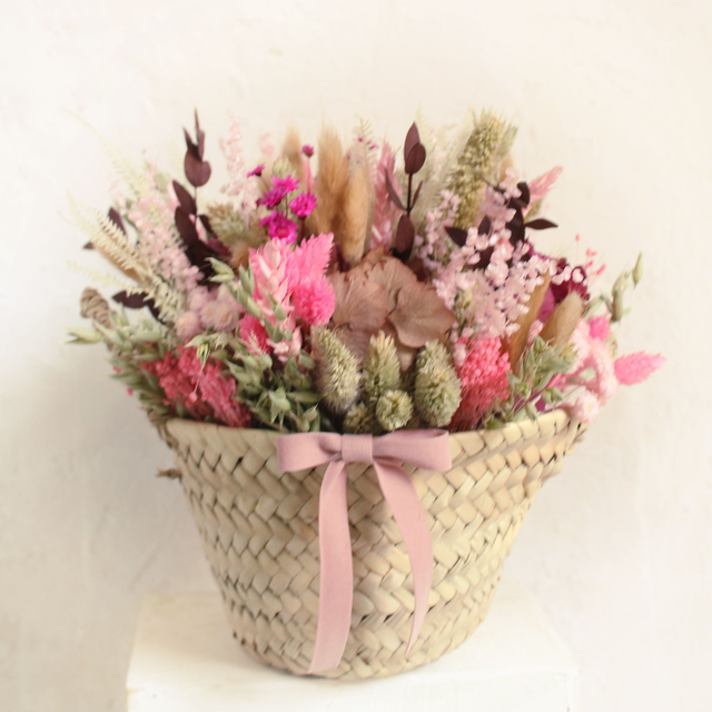 5 - PANERA MINI- CL413 - flores secas y rosita preservada. 24x24cm