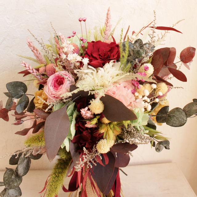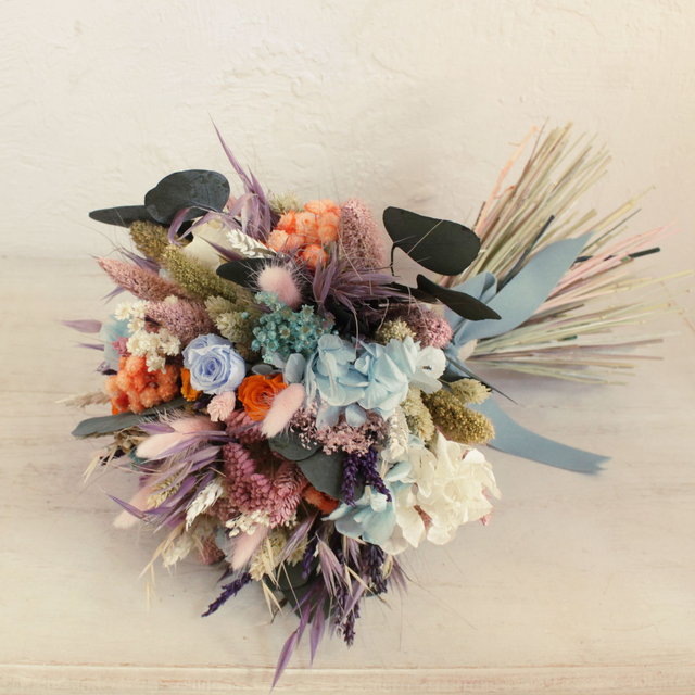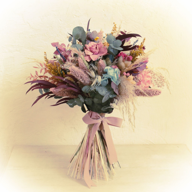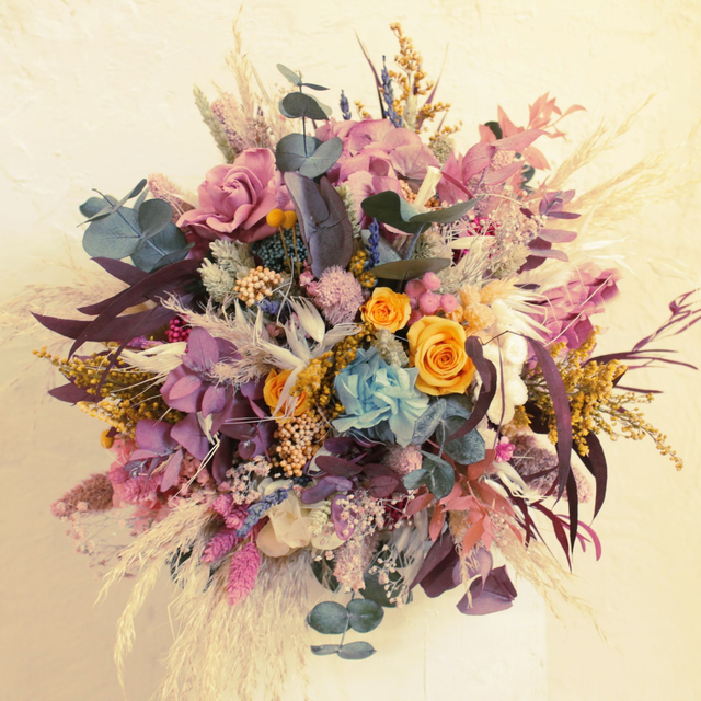 Ramo ESPECIAL flor preservada, seca. Con diversas flores de cabeza tipo peonia, rosas, girasol, rosas inglesas o de jardín.