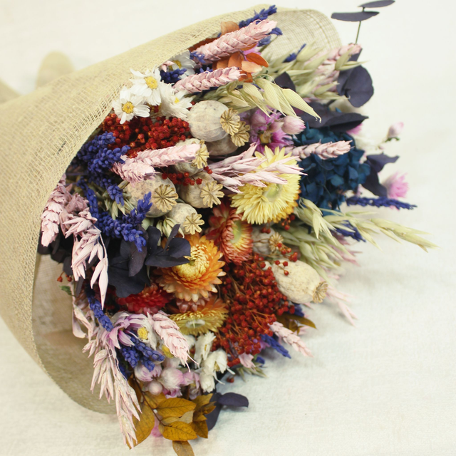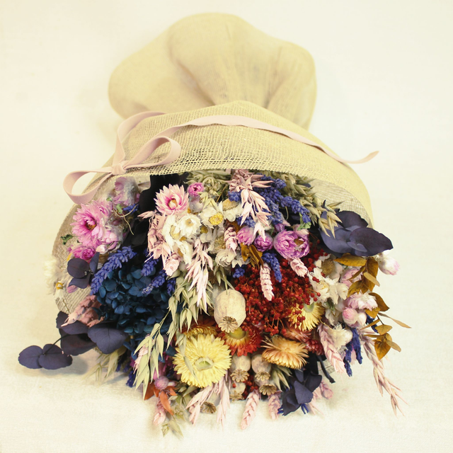 Ramo silvestre con distintas flores secas holandesas, lavanda y eucalipto preservadas.